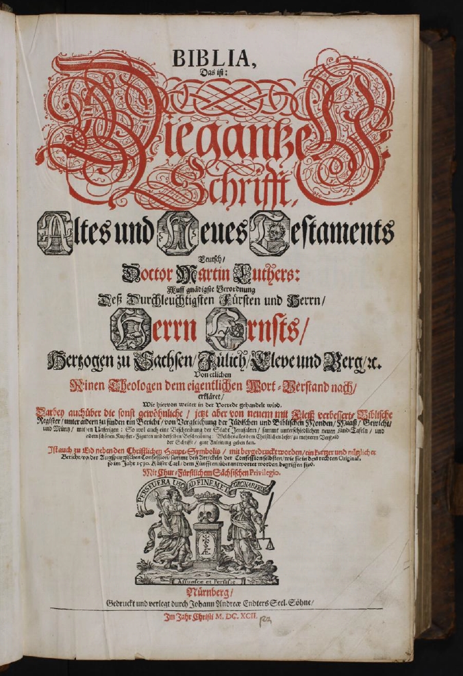 Die aktuelle Seite des VfH zeigt ein Titelbild einer Schrift von Martin Luther von 1692 .