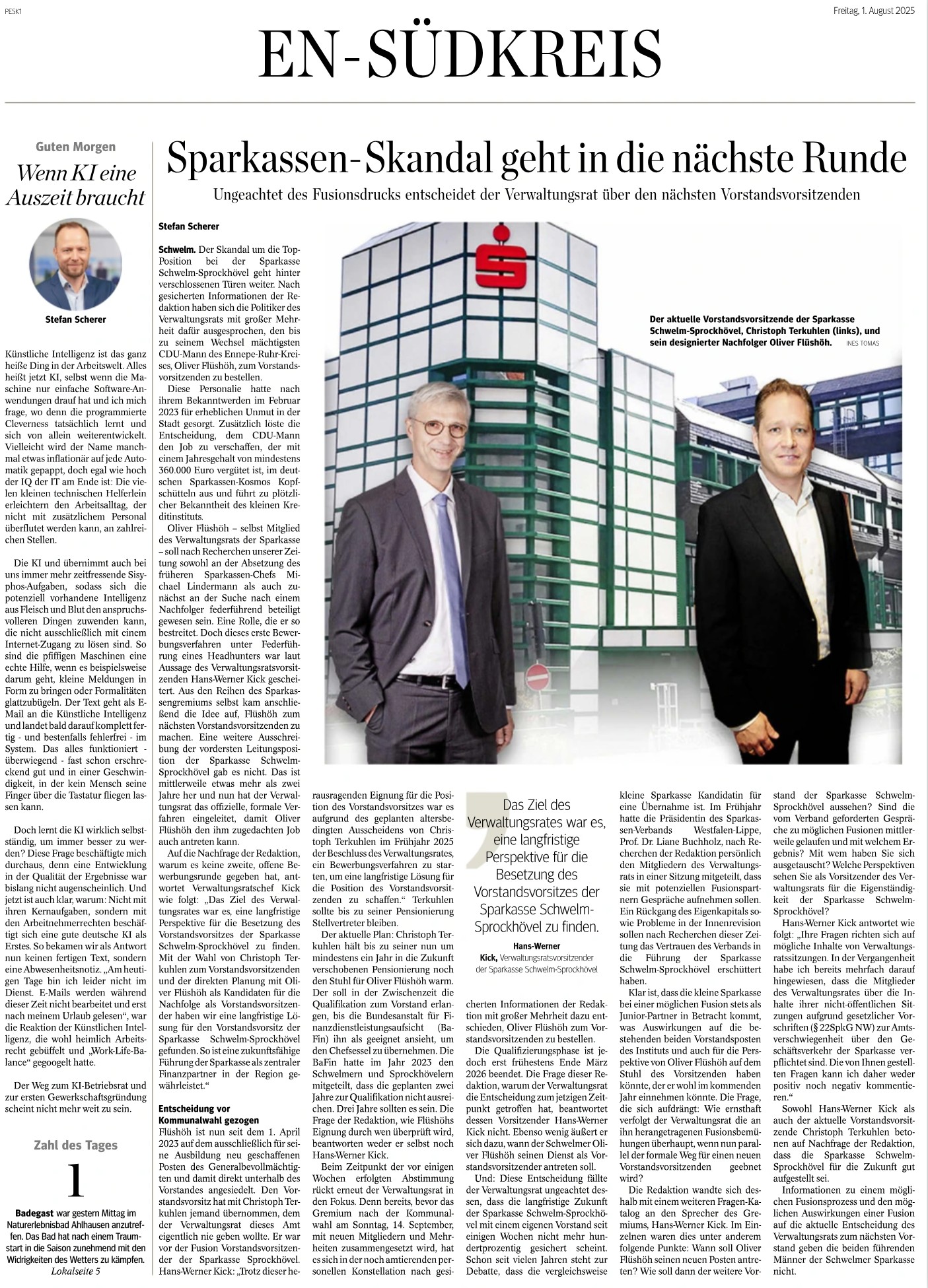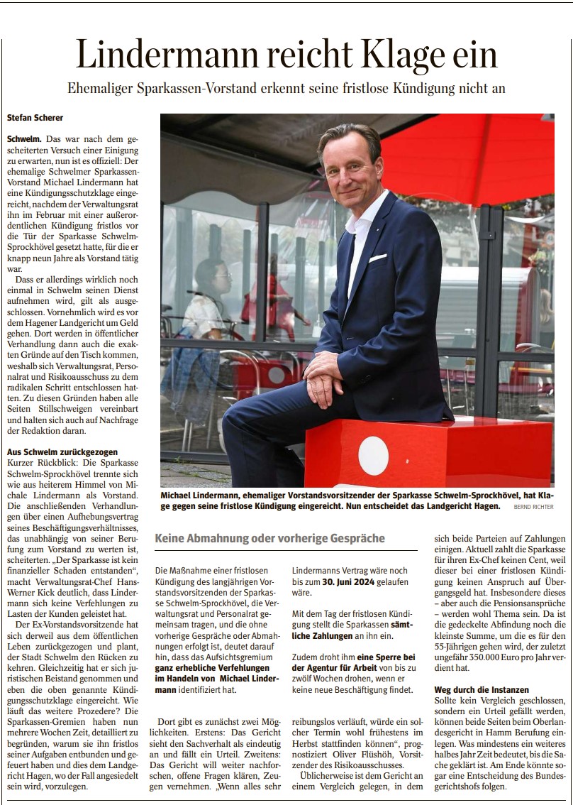 Sparkasse Schwelm: Vorstand muss ein