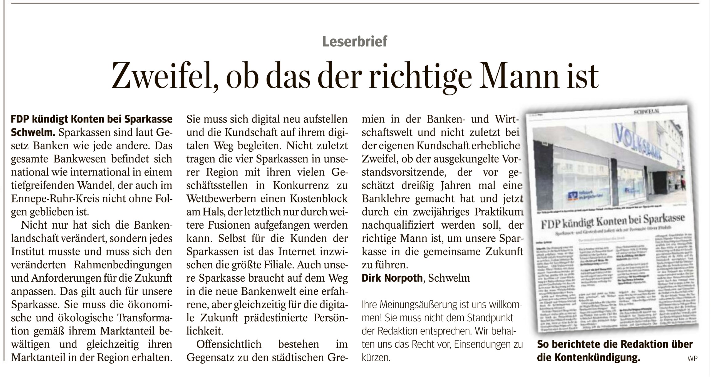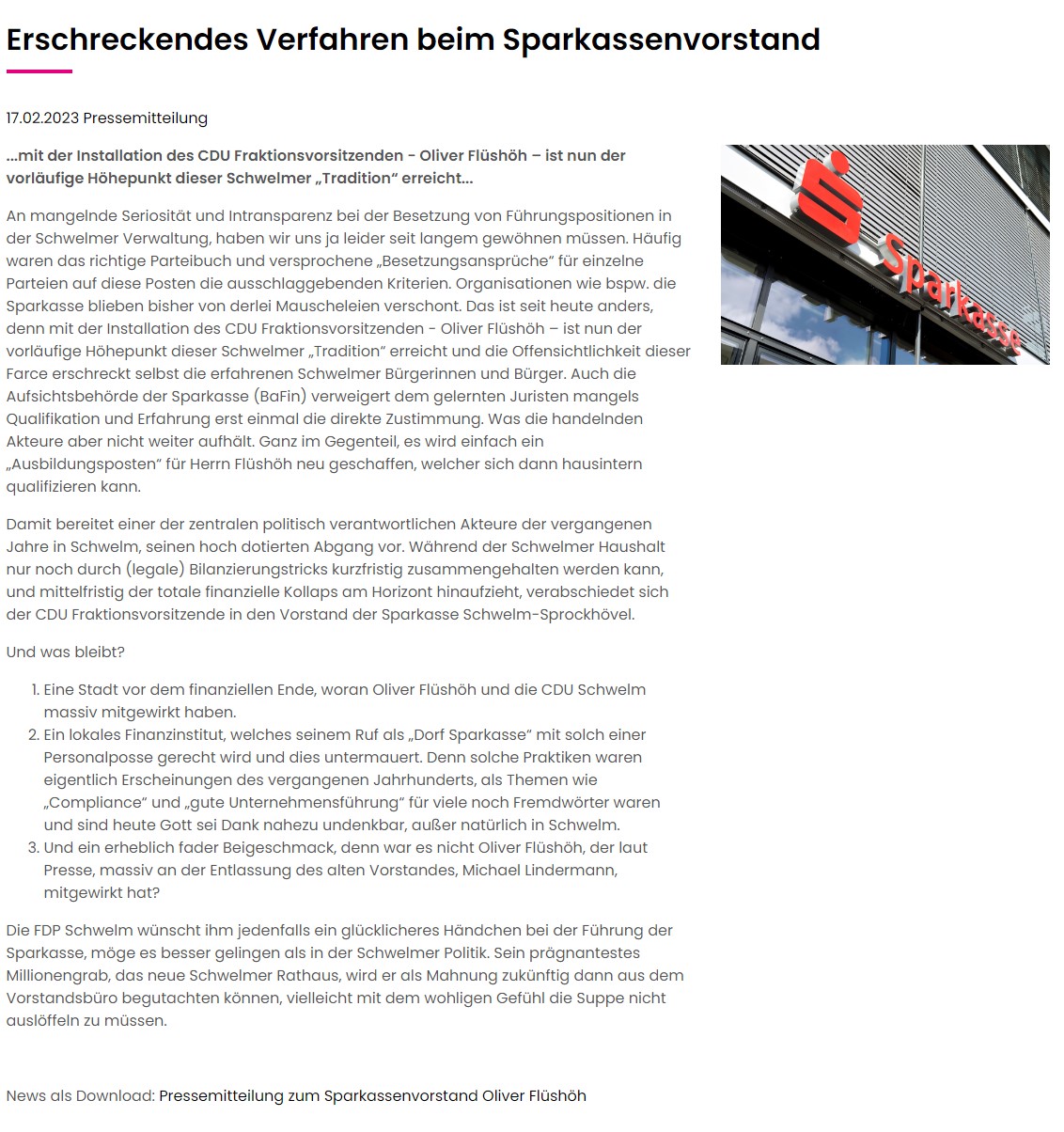 FDP kündigt Konten bei der Sparkasse |