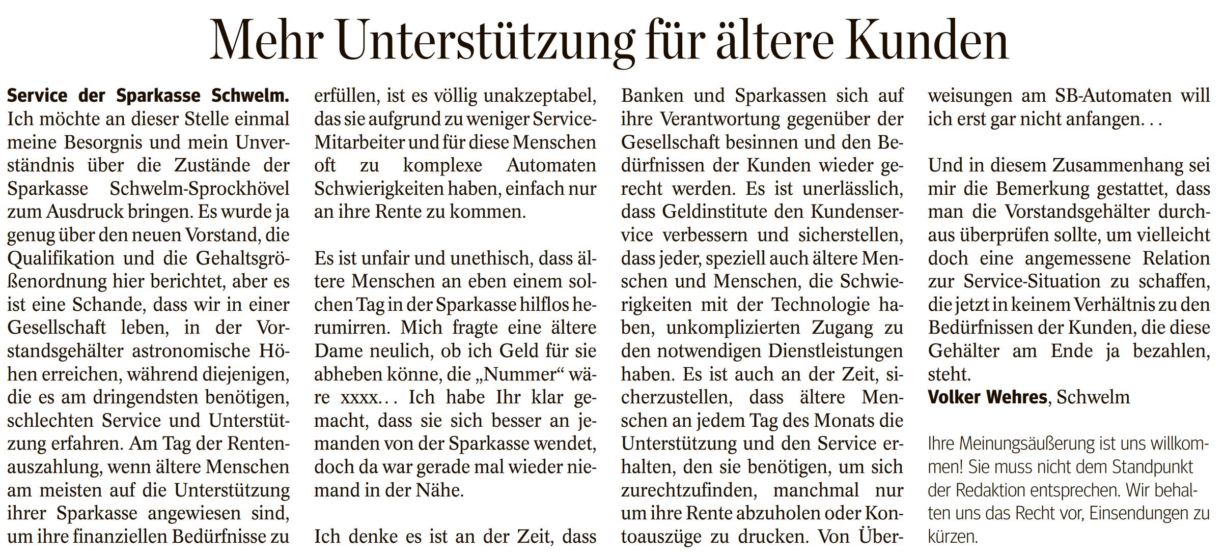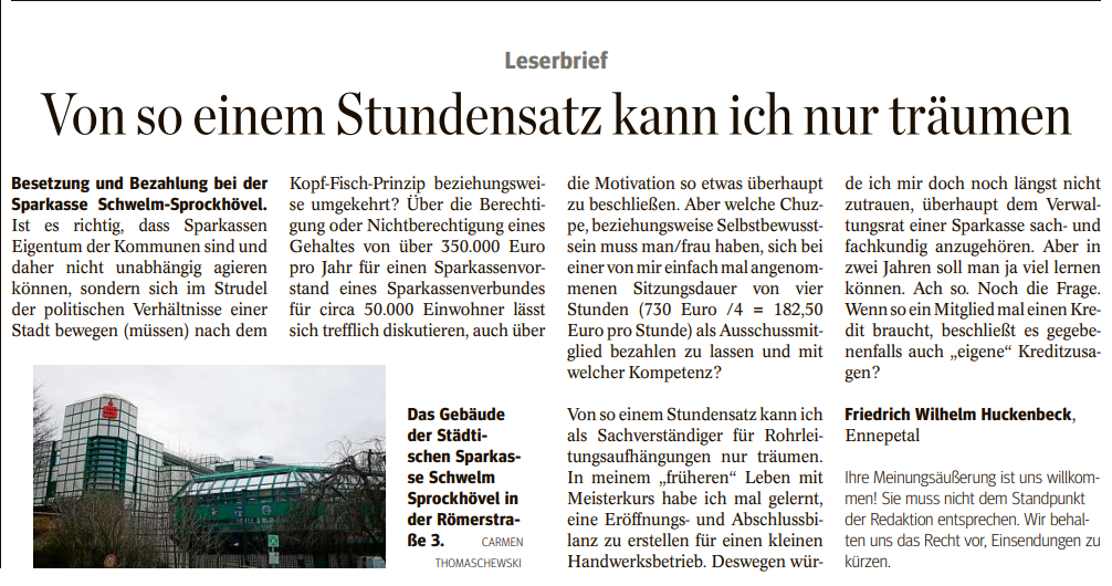 Kritik an der Sparkasse Schwelm: